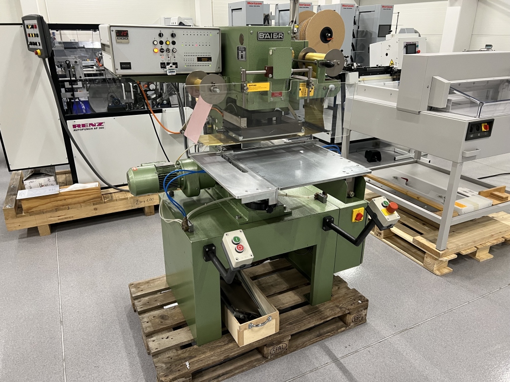 This is a machine from the popular manufacturer of hot stamping machines Gebrüder Baier KG, manufactured in Germany.