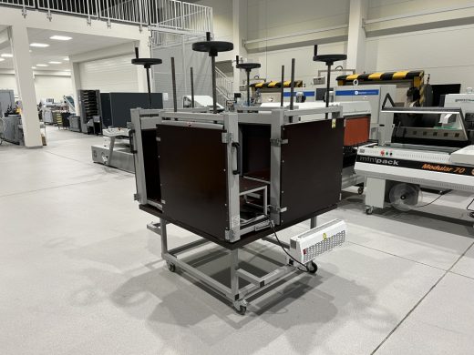 The structure is mounted on wheels for easy movement.