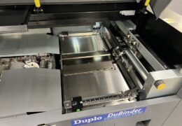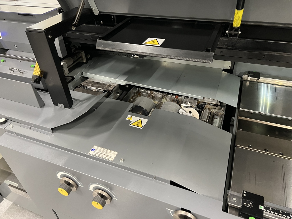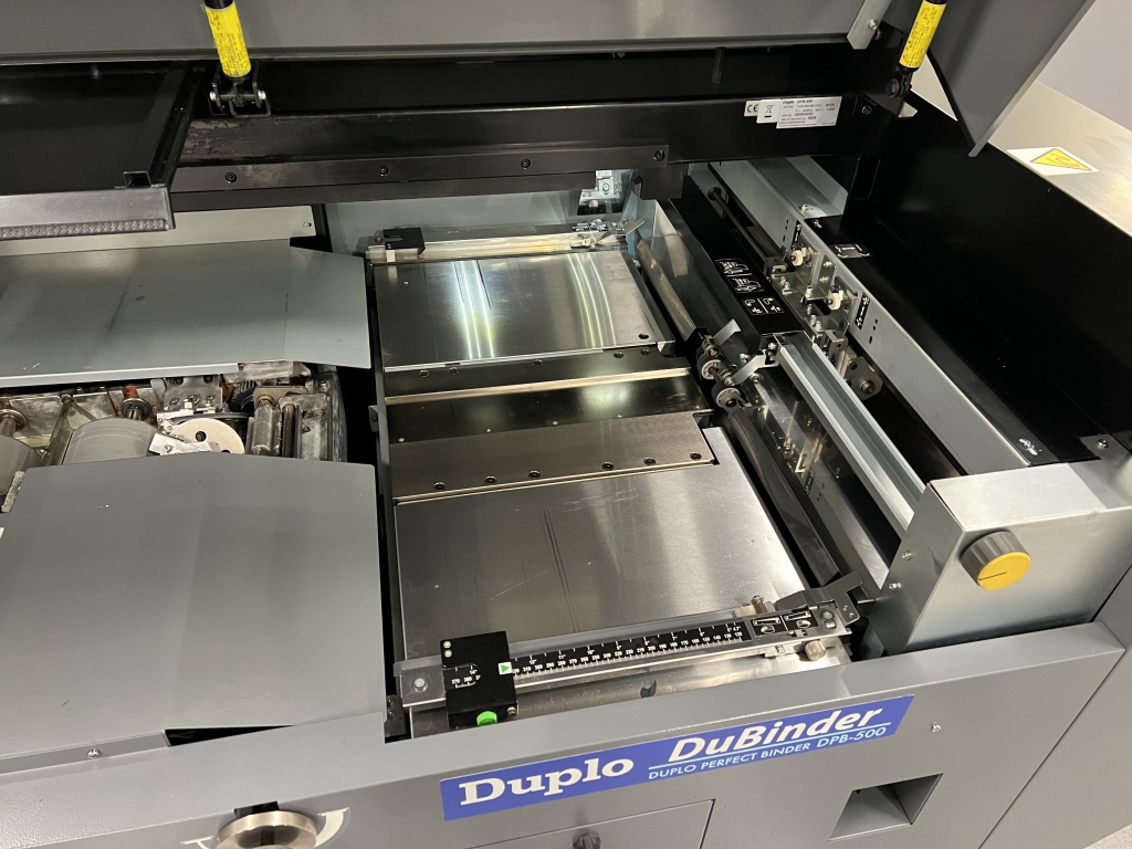 Cover feeding, 3 rollers applying glue including side gluing, milling