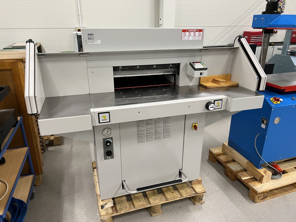Highly efficient, precise hydraulic cutter – for small and medium-sized printing houses, bookbinding shops and digital printing houses. Equipped with programmable control, designed for low-volume, frequently changing orders.