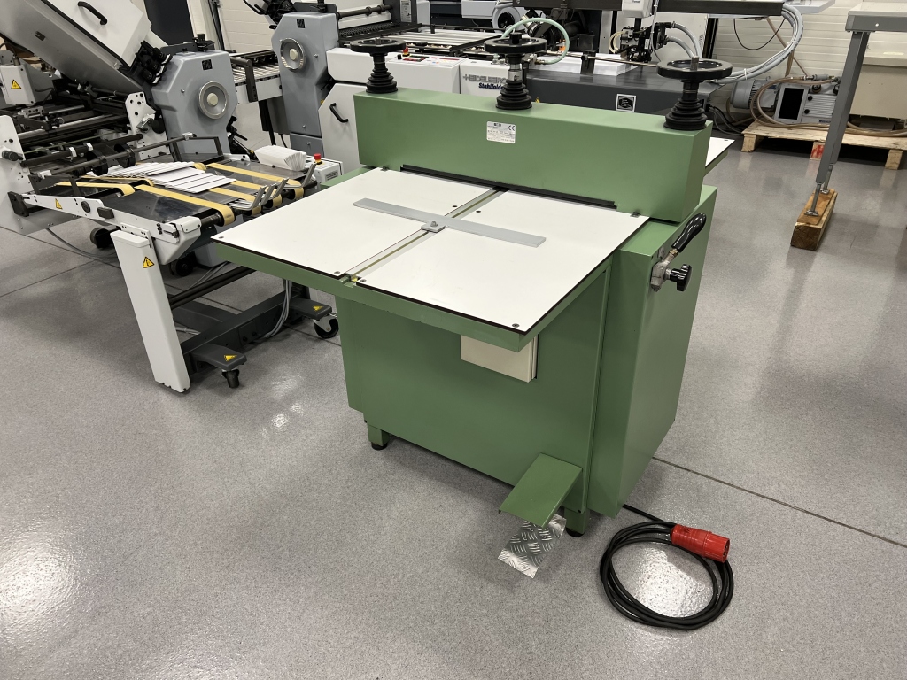 IML CV-60 – creasing machine for cardboard, especially binder cardboard, with adjustable crease width and depth.