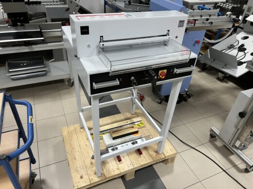 Modern electric guillotine with automatic pressure. Recommended as a bookbinding or printing guillotine for small companies and service establishments.