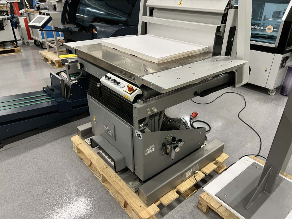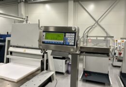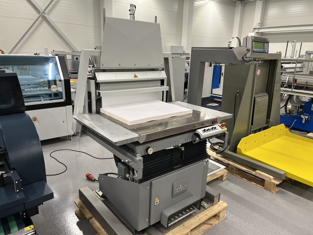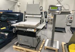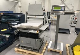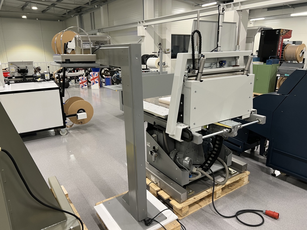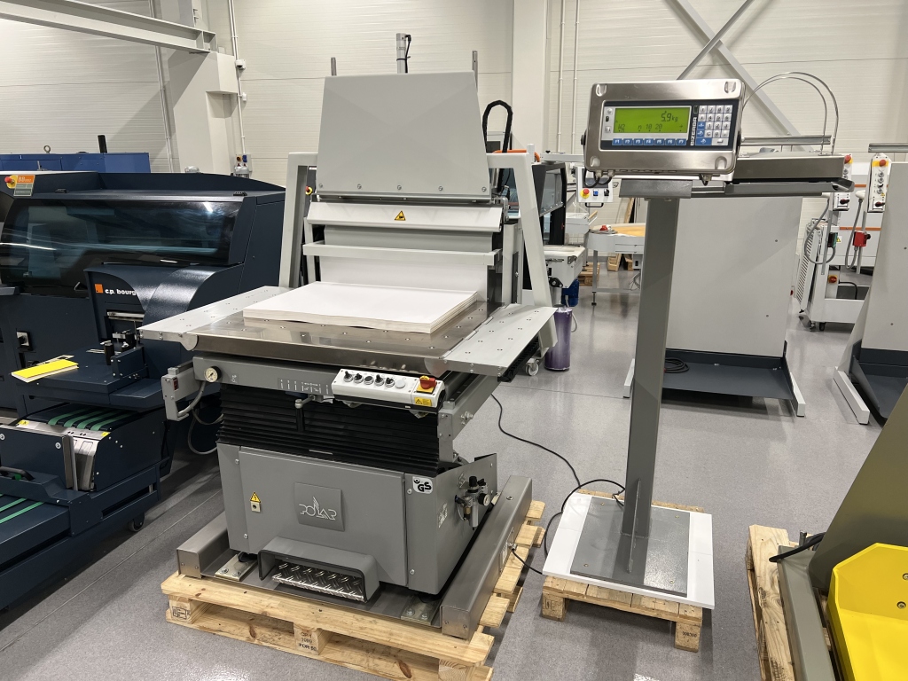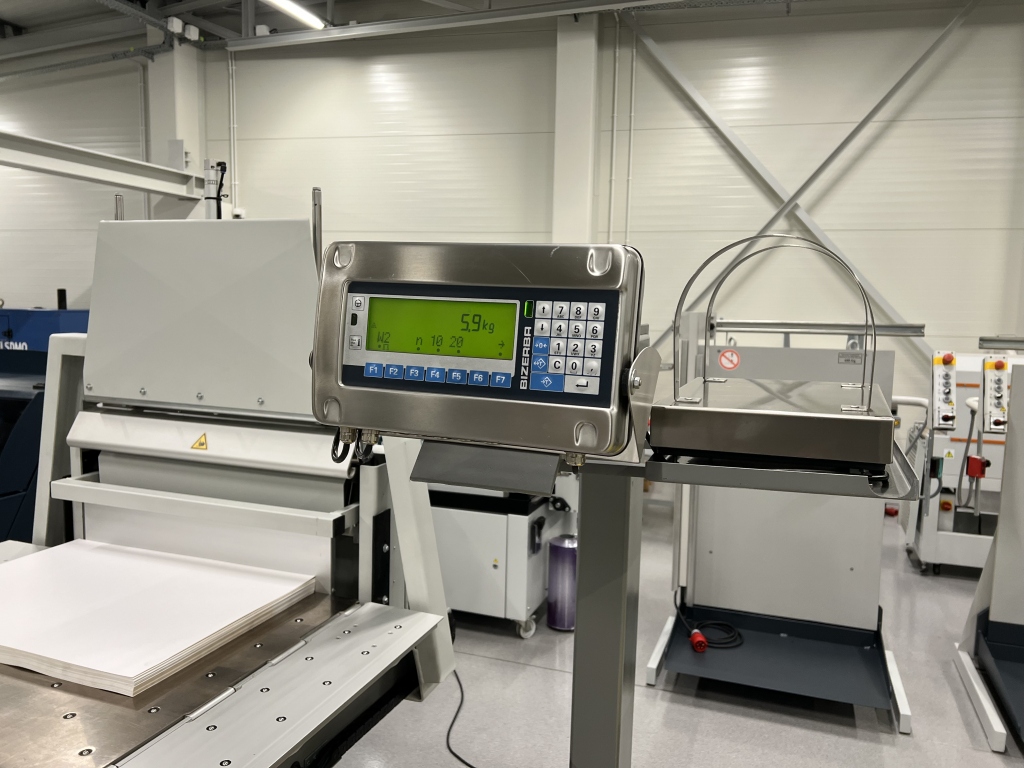 The machine is additionally equipped with a Bizerba sheet weighing system that allows for counting sheets on the machine, taring, packaging, etc.
