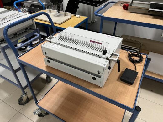 Electric perforation device for a closed, screwed or plastic spine spiral by the German company RENZ: