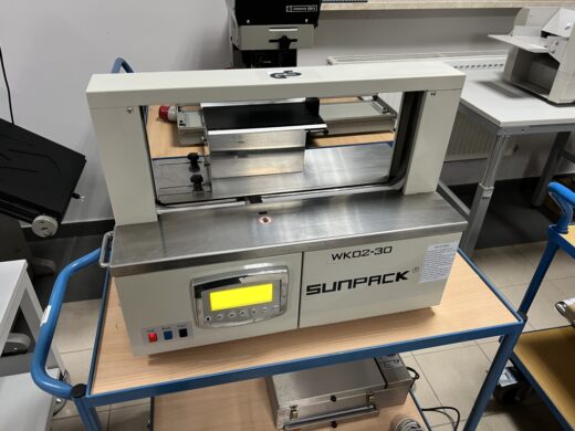 After inserting the material, the machine wraps it with tape, compresses and seals it creating an elegant-looking package.