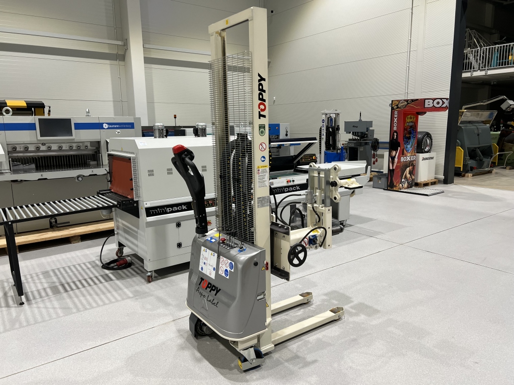 Toppy Aspo Label 300 paper roll turner on a self-propelled trolley