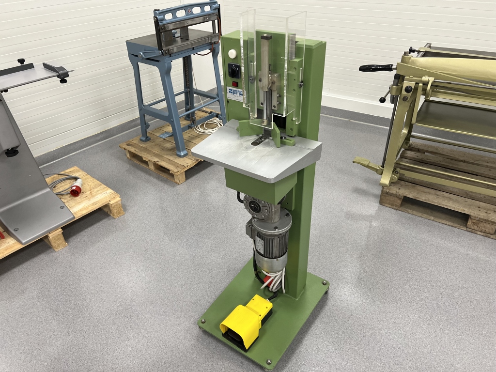 Perfect condition. This is a professional, production device for rounding corners and for cutting corners for hardcover.