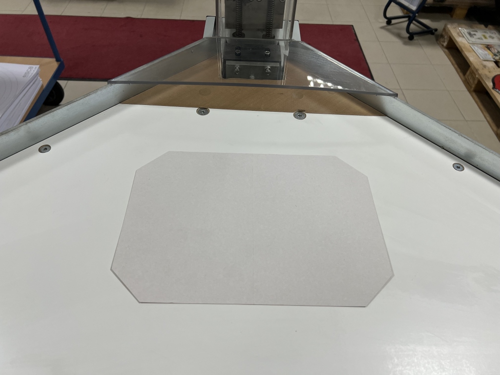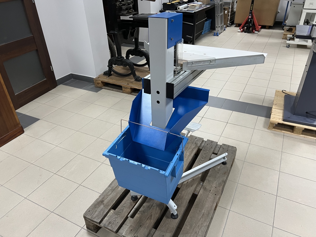 Stan bardzo dobry. Jest to profesjonalne, produkcyjne urządzenie do obcinania narożników pod oprawę twardą.