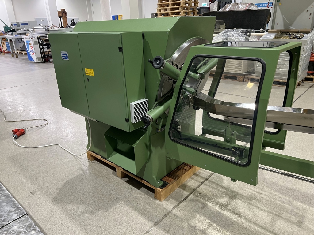 Osłony zabezpieczające, fotokomórki aktywujące automatyczną pracę, łapy do montowania wykrojników z szybką regulacją na korbę.