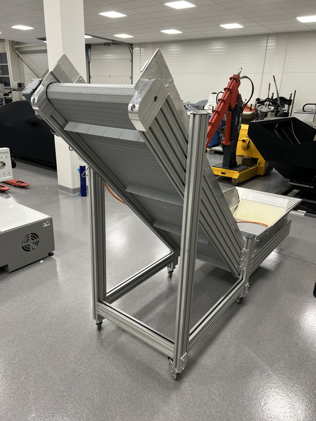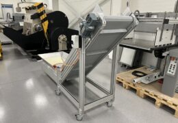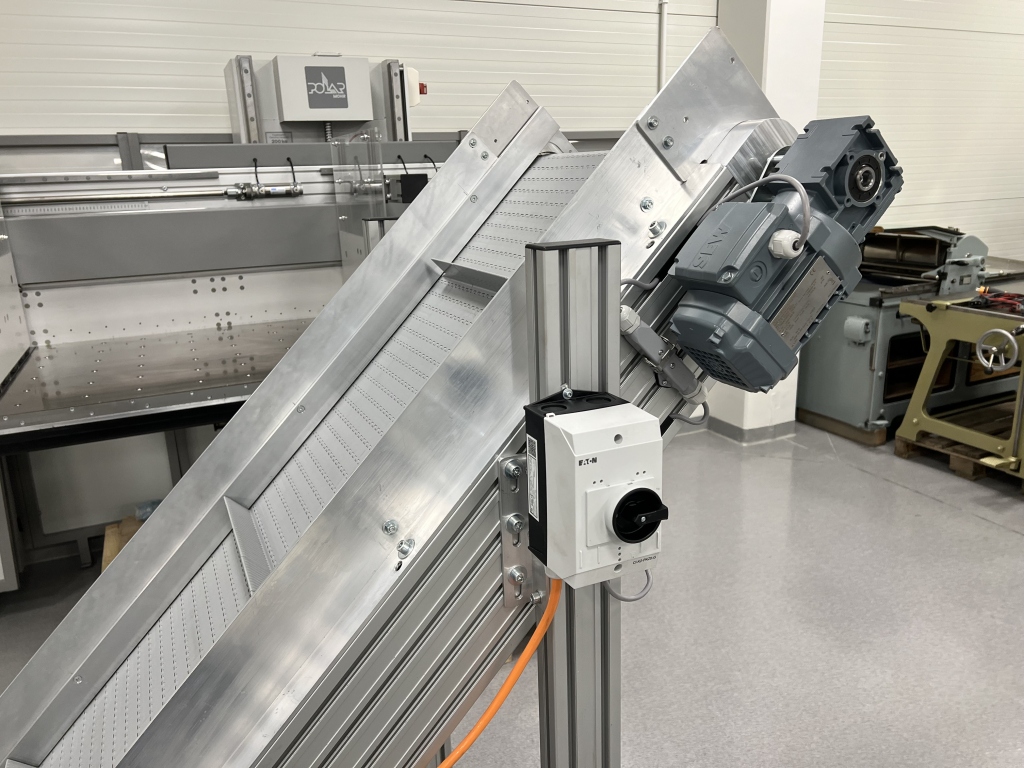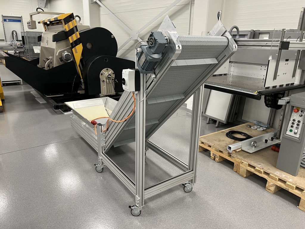 Odprowadzenie ścinków spod maszyny bezpośrednio do kontenera.