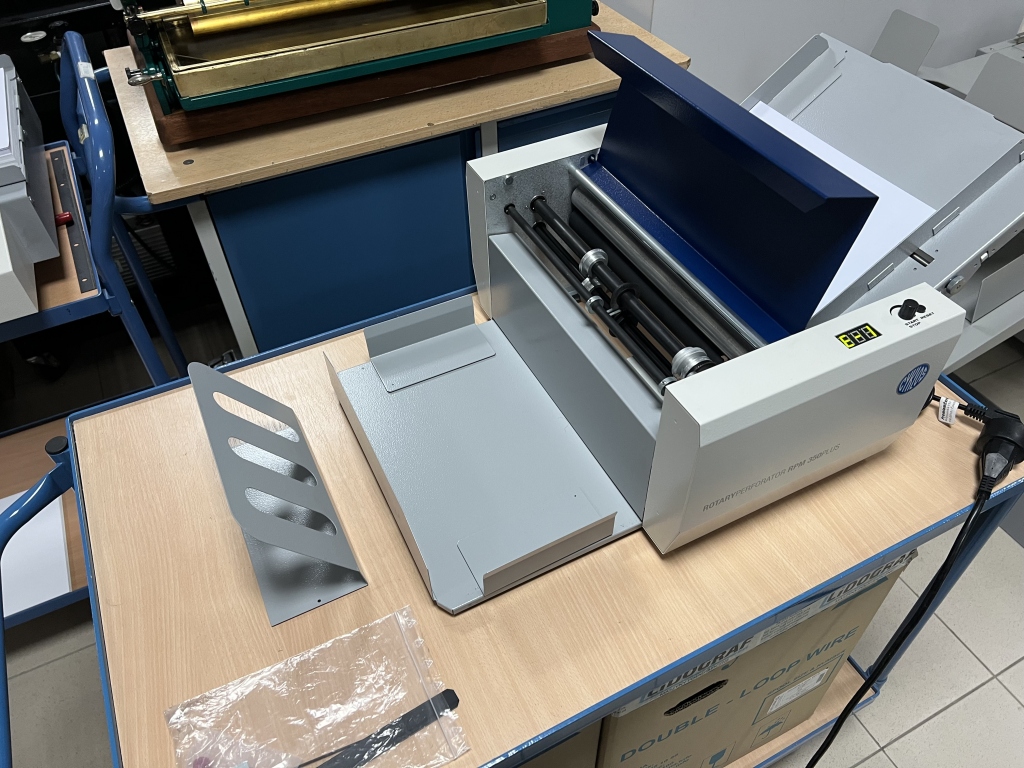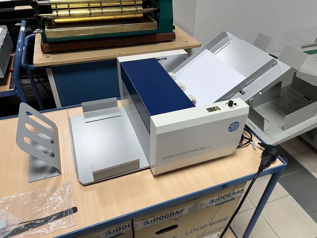 Automatic perforating device with a working width of 350 mm.