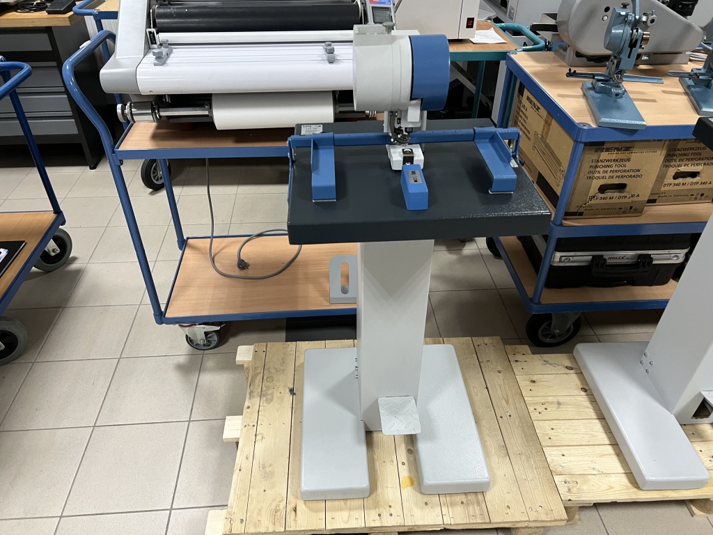 The device feeds the Eyelet in the correct direction, punches holes, and crimps the Eyelet in a single pass.