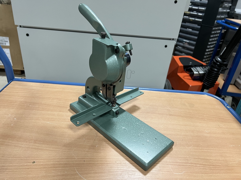 The device feeds the Eyelet in the right direction, punches the paper and crimps the Eyelet in one pass.