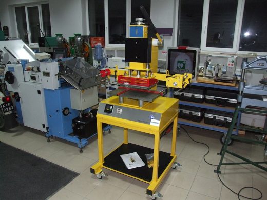 Description: HFS-310R is a manual knee press for hot foil stamping, paper and plastic stamping. The device is useful in every advertising agency and digital printing house. Manually operated pressure makes it independent of compressed air installations. The knee design of the press ensures repeatability of work and very high pressure of the matrix to the material.