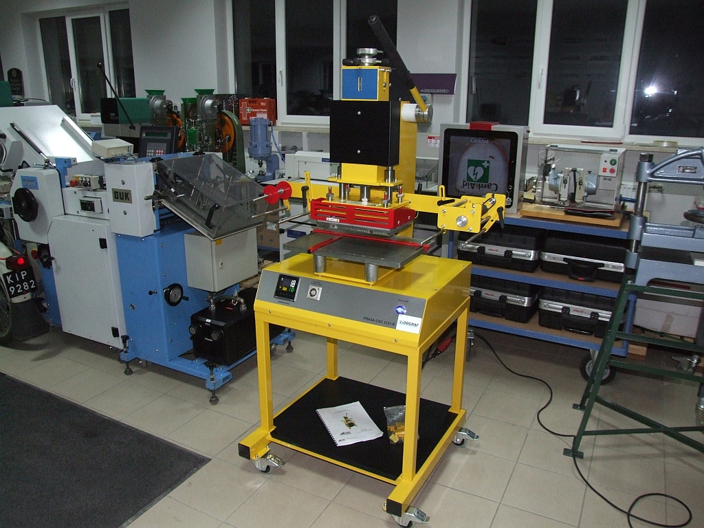 The device has been equipped with automatic foil feeding, which significantly reduces the time of a single cycle, worktop, adjustment of the pressing depth, grinded plate with an accuracy of 0.01 mm, which significantly increases the quality of pressing with large dies, touch panel and modern OMRON control.