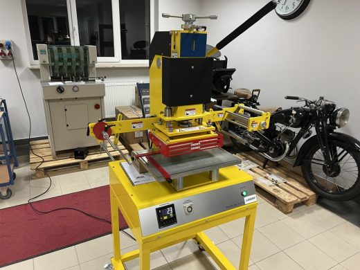 The device is equipped with an automatic foil feed, which significantly shortens the time of a single gilding cycle, a worktop, adjustable embossing depth, a heating plate polished with an accuracy of 0.01 mm, which significantly increases the quality of embossing with large dies, a touch panel and modern OMRON control.