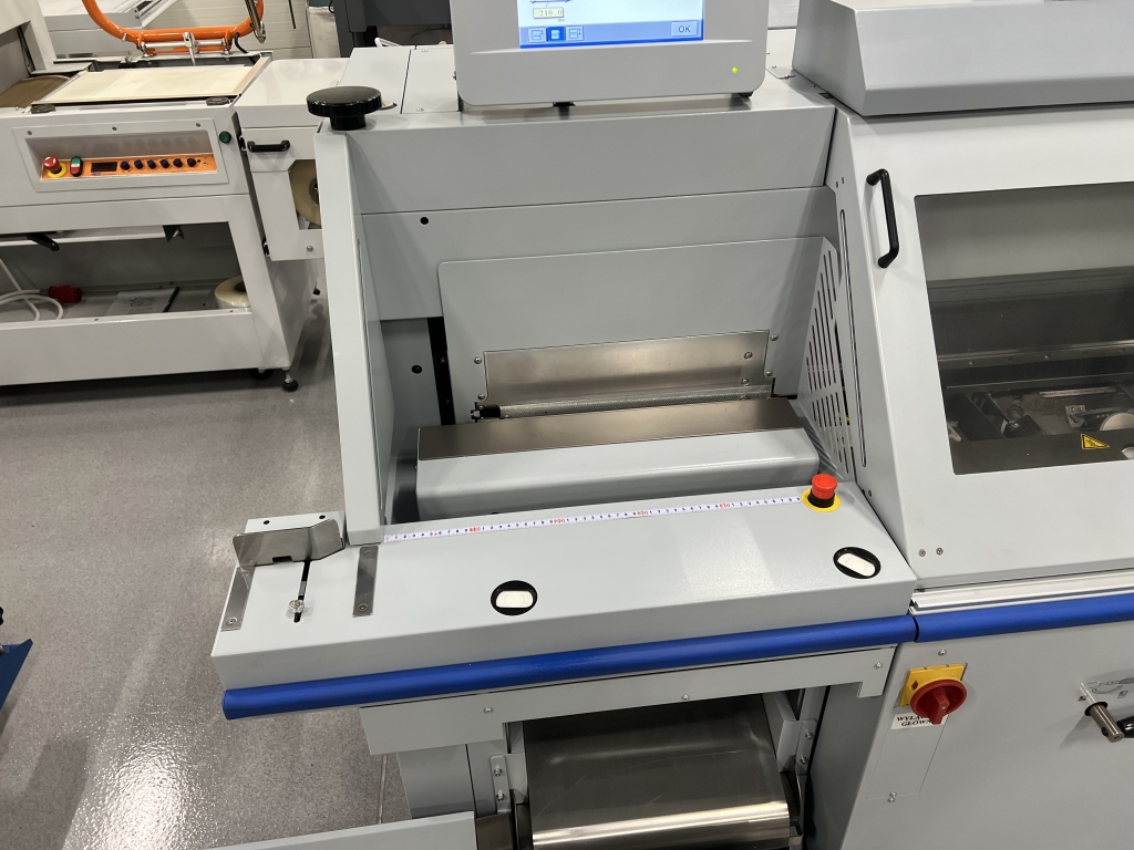 Binds books with a thickness of 0.5 to 50 mm and a spine length of 135 to 320 mm with a maximum number of copies up to 500 books/hour.