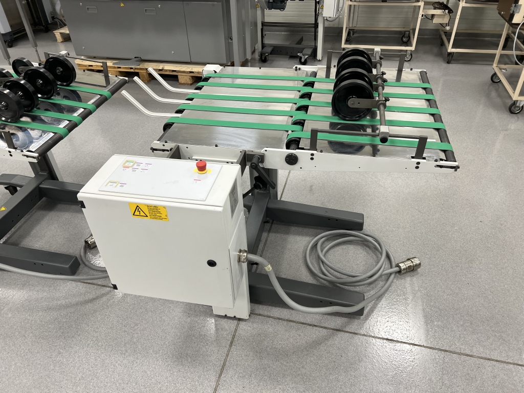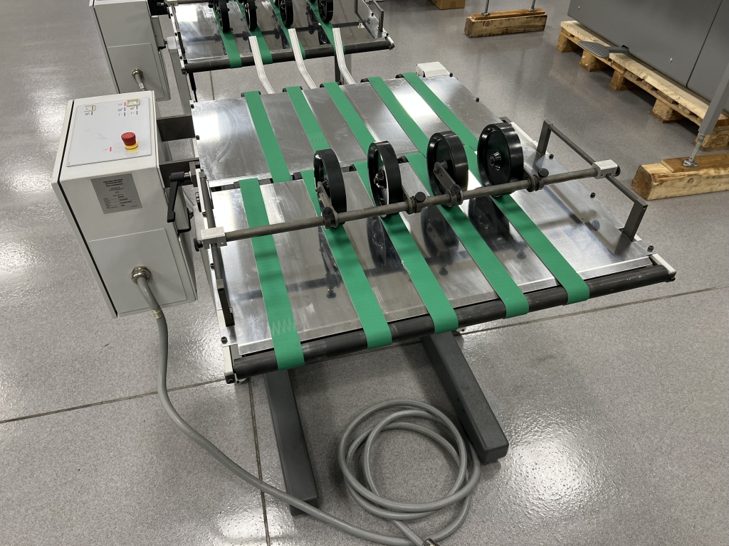 Can be connected to any Heidelberg folding machine, with smooth delivery speed adjustment.