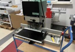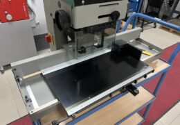 The installed table is an enlarged version. Additionally, the paper drill has an automatic table lock that releases after each cycle.