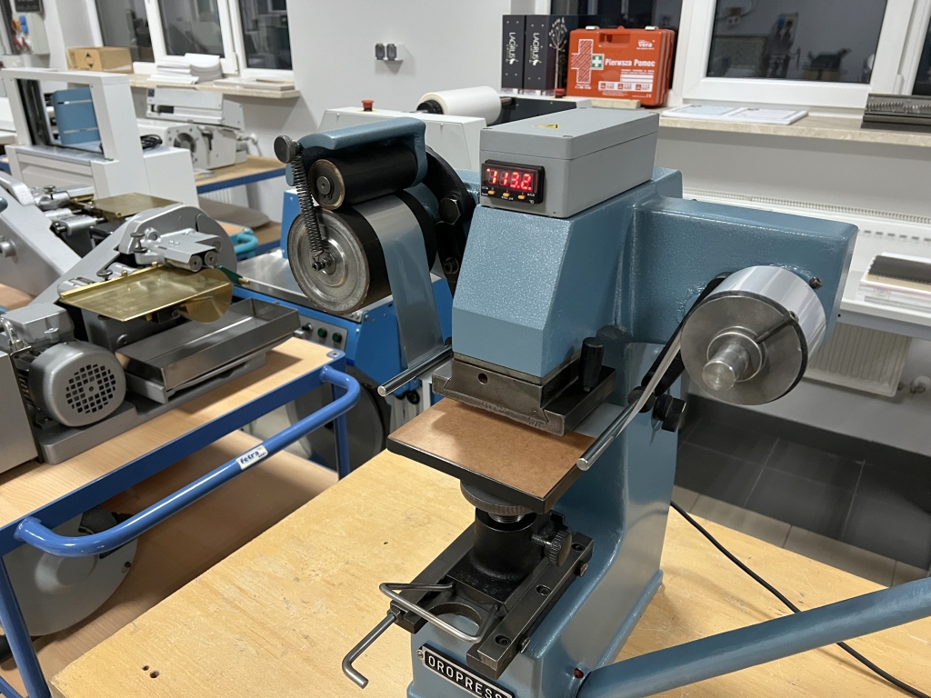 The Oropress hot stamping press is a hot stamping and embossing press for paper and plastics. It’s a useful device in any advertising agency or digital printing house. The manual press is powered by only 230V. A powerful press with adjustable pressure ensures repeatability and very high pressure between the die and the material.