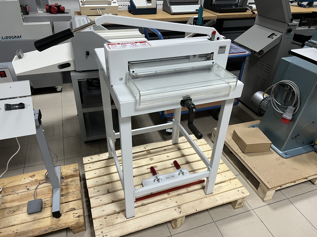 Ideal 4305 is a basic guillotine for cutting paper in A3 format. It is ideally suited as cutting equipment in small printing, digital printing points, photographic studios, offices, etc. Full manual operation makes the device reliable and easy to use. Low purchase and operating costs make this device ideal for companies with low-volume production.