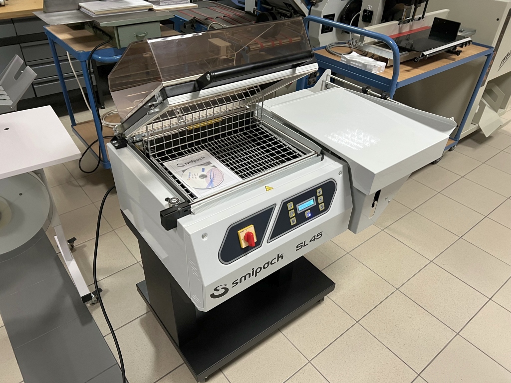 Smipack series of shrink wrapping machines. Their main advantage is their compact design, requiring less space than other similar units on the market.