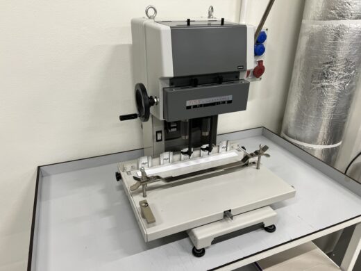 The drill table is equipped with an additional mechanism with a spacing memory, allowing drilling of unified spacing (e.g. binder)