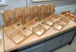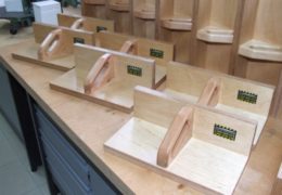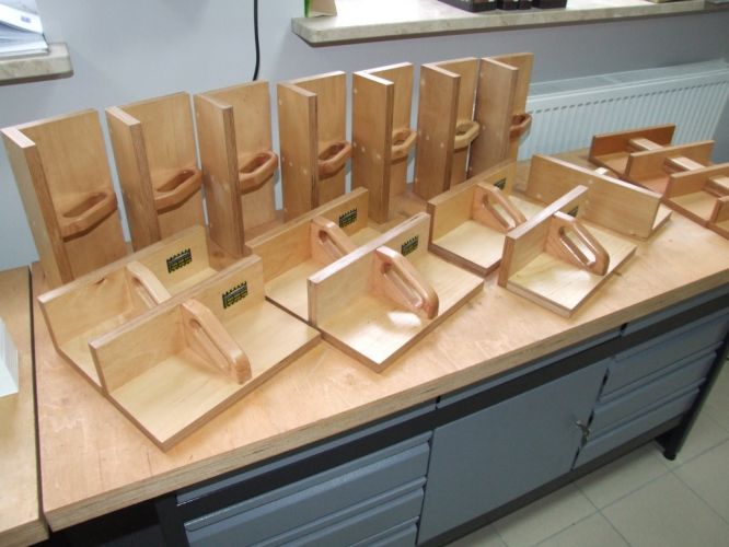 Dobijak do papieru Narzędzie wykonane ze sklejki liściastej wodoodpornej 21 mm. Uchwyt zaś wykonany z twardego drewna (dąb, buk). Precyzyjna obróbka na maszynach CNC pozwala zachować dokładność pracy, elementy klejone oraz skręcane wkrętami dodatkowo lakierowane. Uniwersalne wymiary: 105×300 mm – niższa strona 150×300 mm – wyższa strona Zastosowanie w gilotynach szerokości 800-1320 mm.