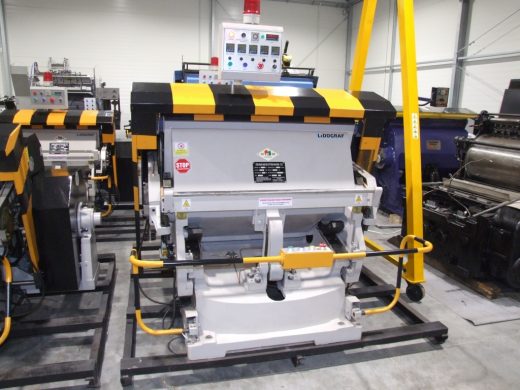 Maszyna służy do wycinania kształtów z formy (wykrojnika) materiałów tj. papier, tektura, skóra, tworzywa sztuczne itp.