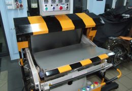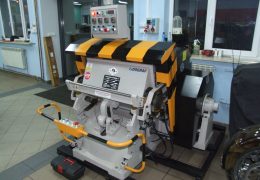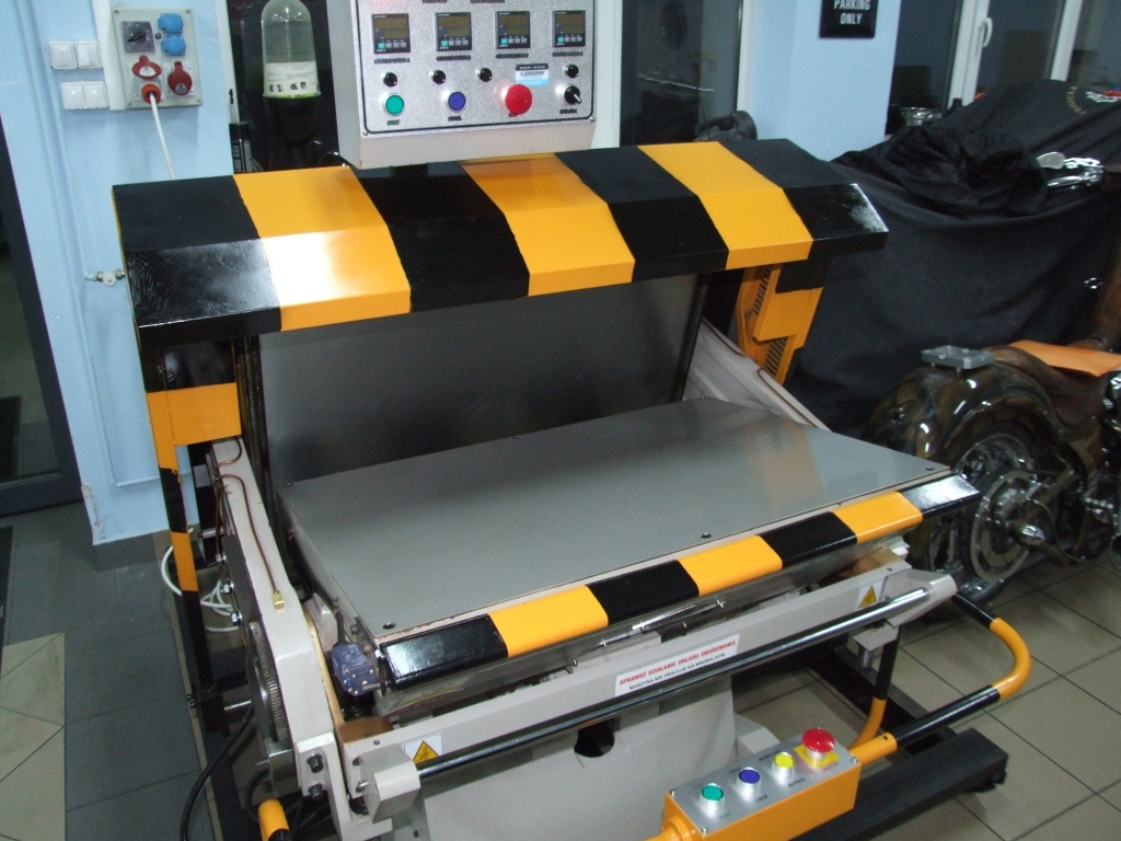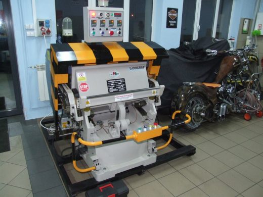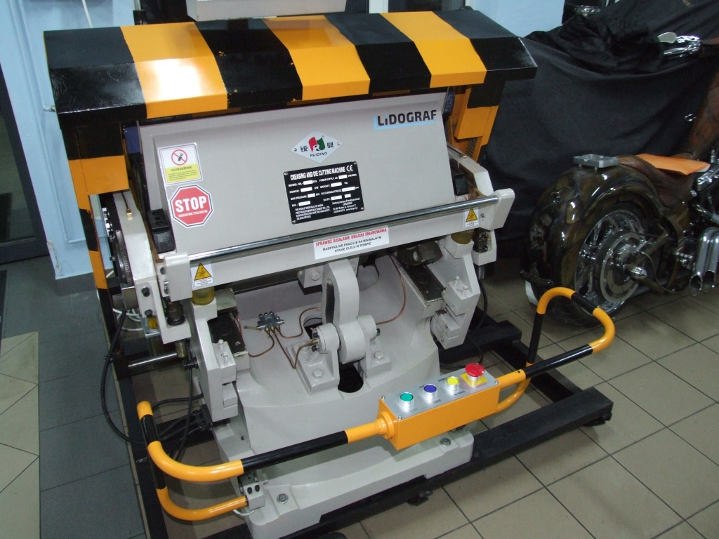 Maszyna służy do wycinania kształtów z formy (wykrojnika) materiałów tj. papier, tektura, skóra, tworzywa sztuczne itp.